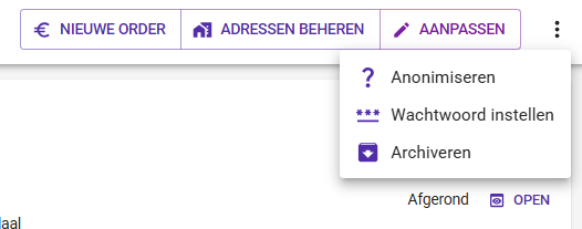 Vervolgens komt onderstaand menu tevoorschijn en klik je op anonimiseren.